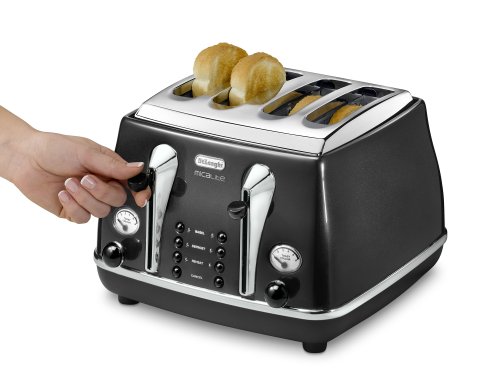 [ln] High gloss black finish with chromed details [ln] [ln]- [ln] Electronic controls: Reheat, defrost, one-side bagel and cancel [ln] [ln]